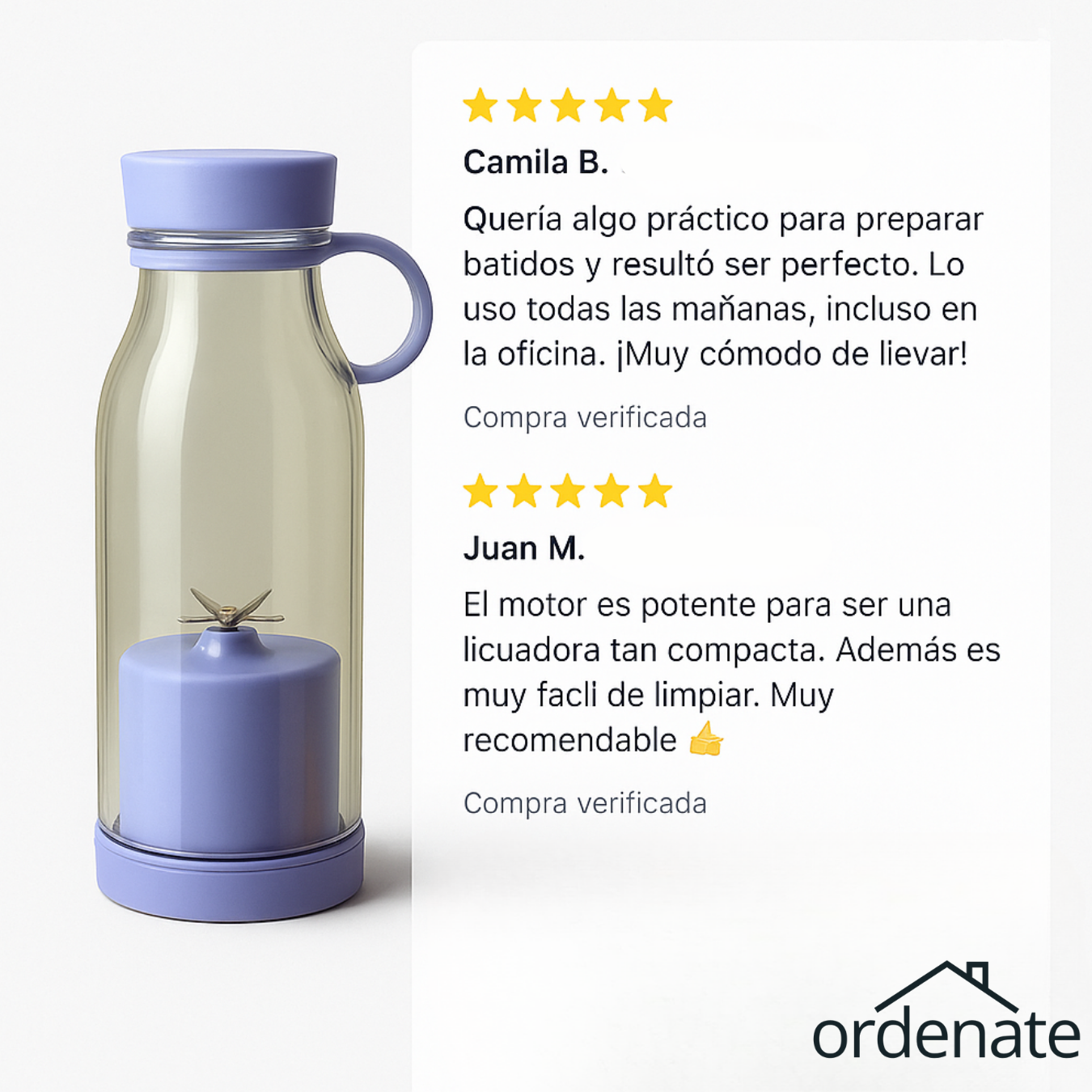 A diferencia de otras licuadoras portátiles, MiniBlend™ no es un simple electrodoméstico: es un accesorio que acompaña tu estilo de vida. Su diseño limpio y elegante la convierte en parte de tu rutina diaria — no en un objeto más que ocupa espacio.