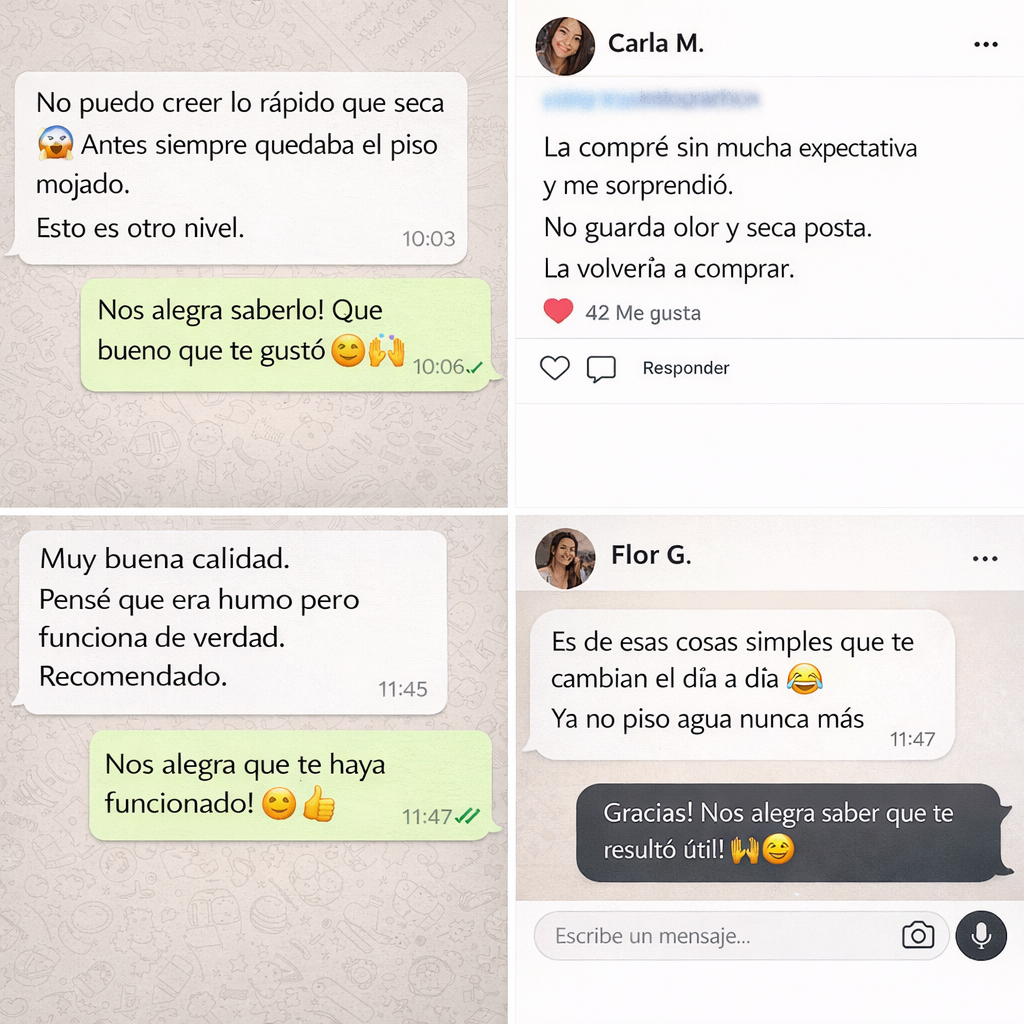 La diferencia con una alfombra tradicional se siente enseguida: menos sensación de humedad, secado mucho más rápido y una experiencia más cómoda cada vez que salís de la ducha.