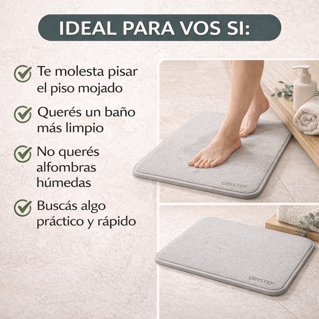 Sentí una superficie firme, prolija y agradable al salir de bañarte, sin pisar agua ni lidiar con una alfombra empapada.